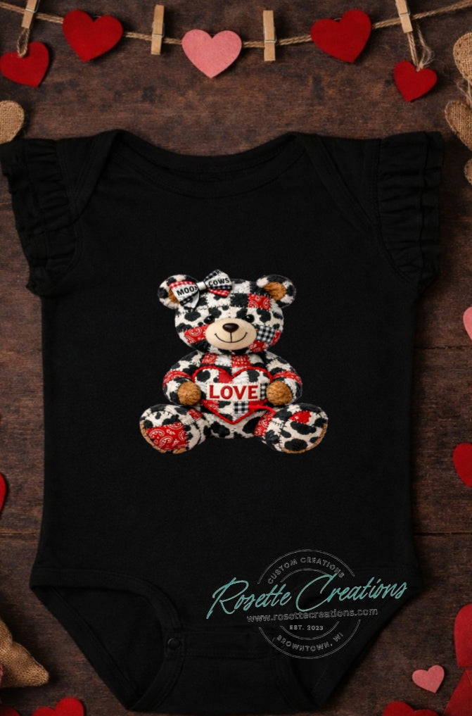 Cow Quilt Love Teddy Bear Flutter Sleeve
