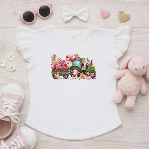 Valentines Day Tractor Ride Flutter Sleeve T-Shirt