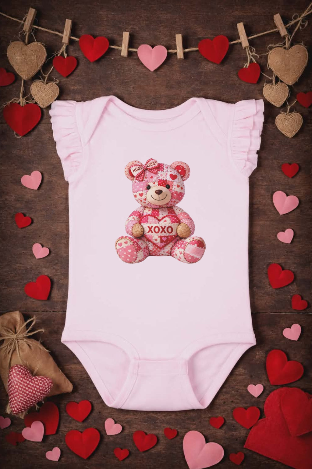XOXO Quilt Teddy Bear Onesie
